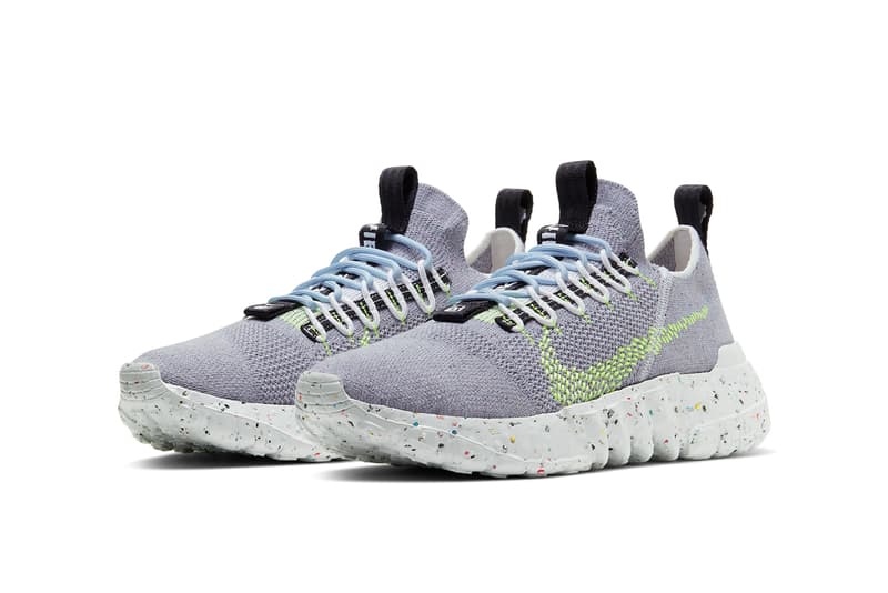 Created from scraps or space junk space hippie is the result of sustainable practices meeting radical design. The shoe takes notes from the nike space hippies exploratory process and its aesthetic to create an iteration that features a full length nike grind outsole made with 15 percent nike grind. The sustainable four shoe lineup is set to hit shelves this summer.