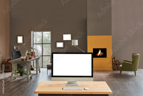Background Business Chair Clear Computer Copy Space Creative Decor Design Designer Desk Desktop Desktop Computer Display Hipster Home Interior Laptop Minimal Minimalist Mock Mockup Modern Monitor Nobody Office Pc Place Room
